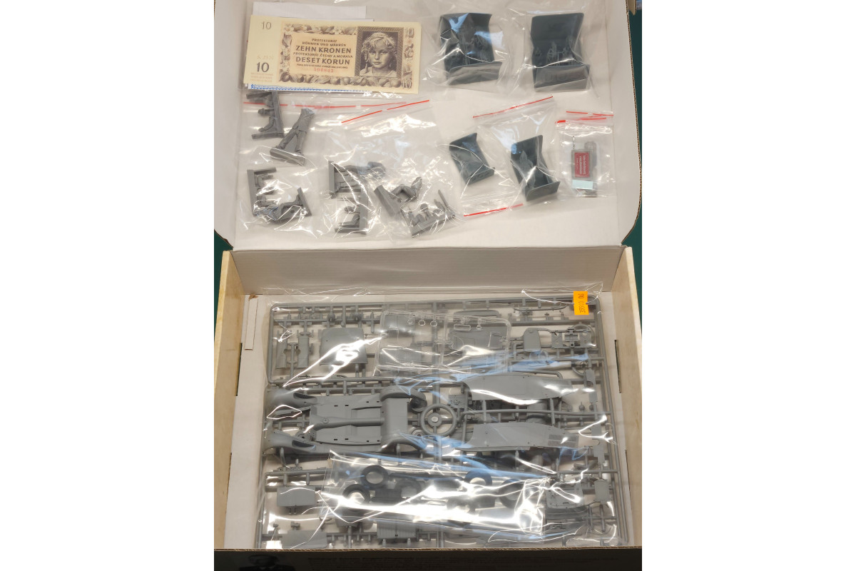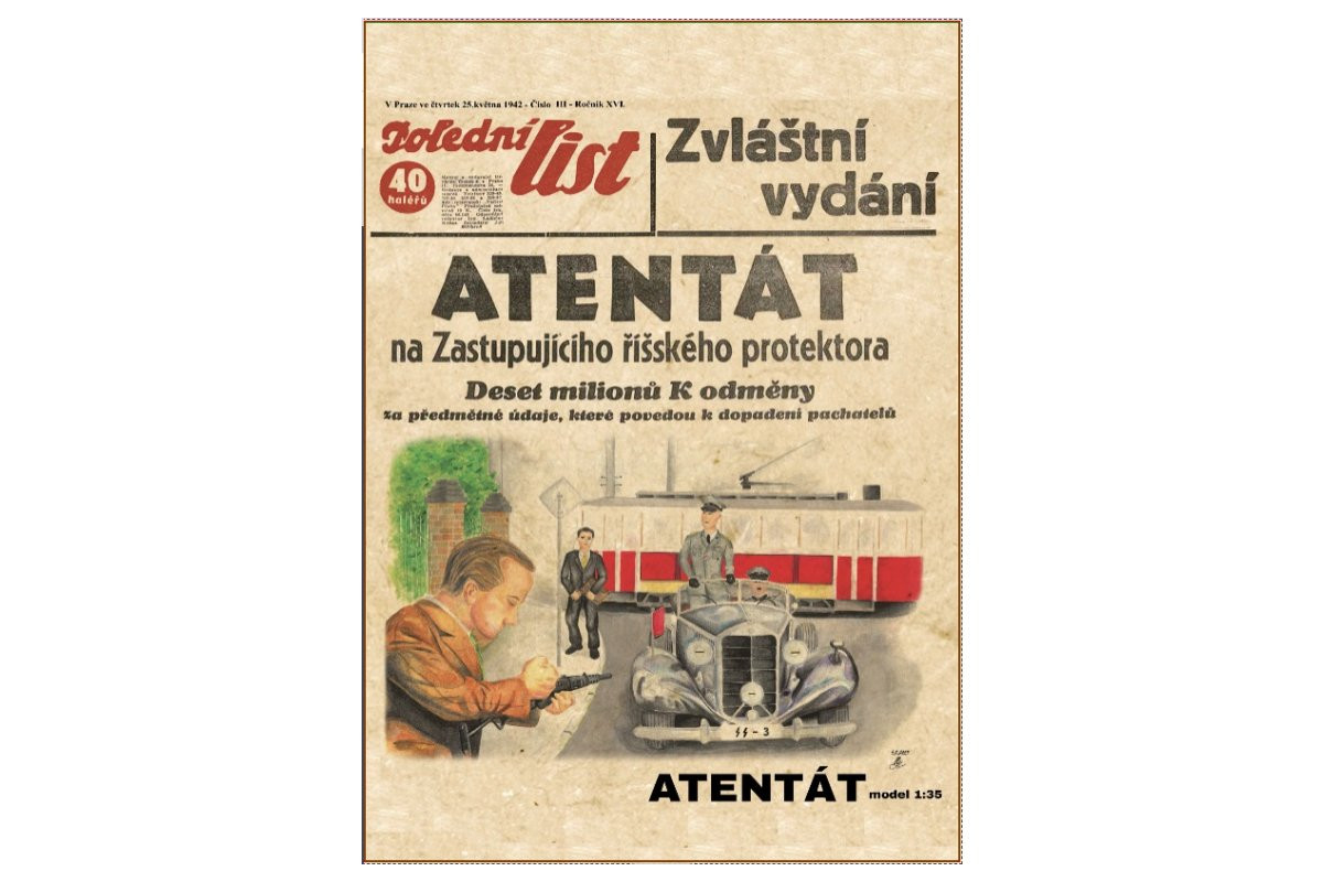 Součástí balení je barevná brožura obsahující návod na sestavení modelu, barevné schéma a informace o jednotlivých účastnících atentátu a akci samotné.