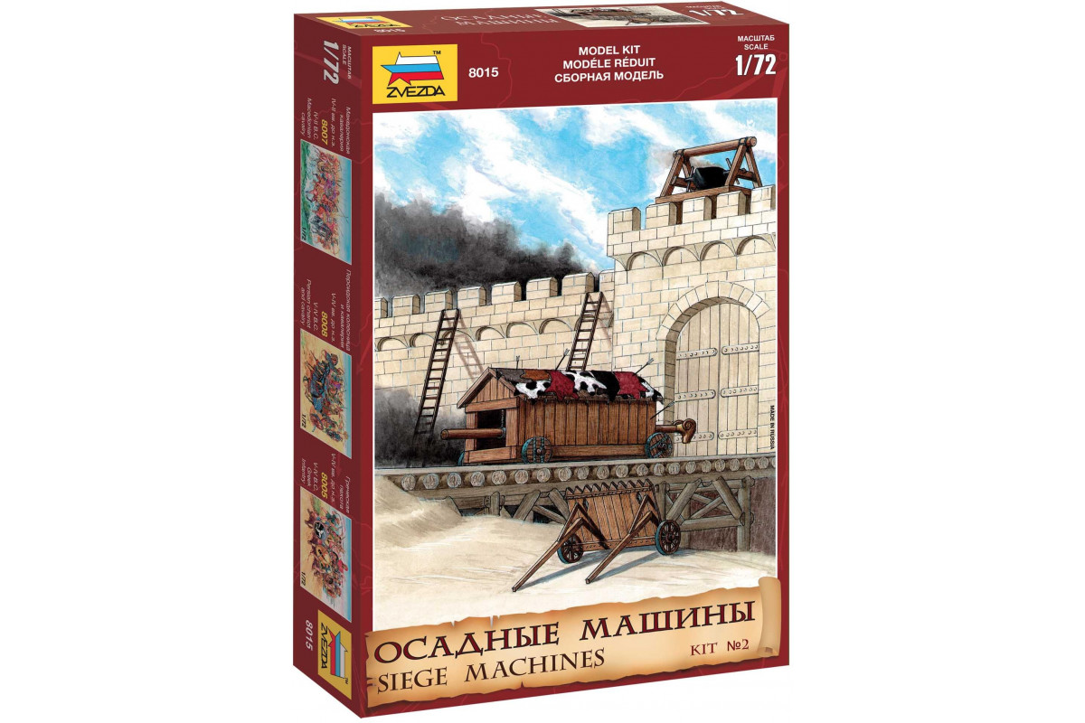 Model obléhacích vozidel k sestavení. Velikost: 1:72.