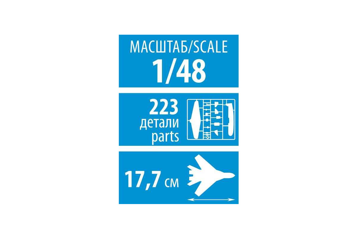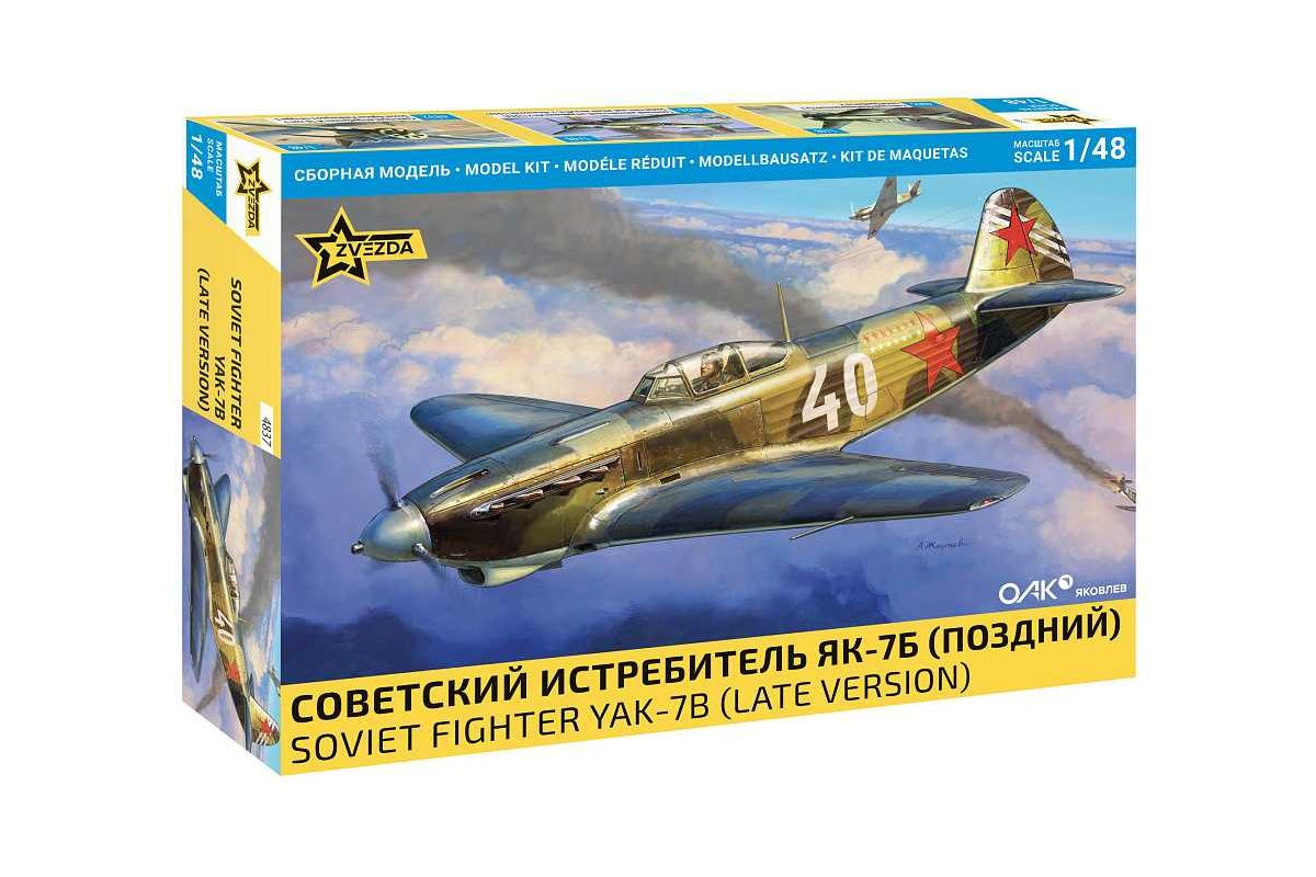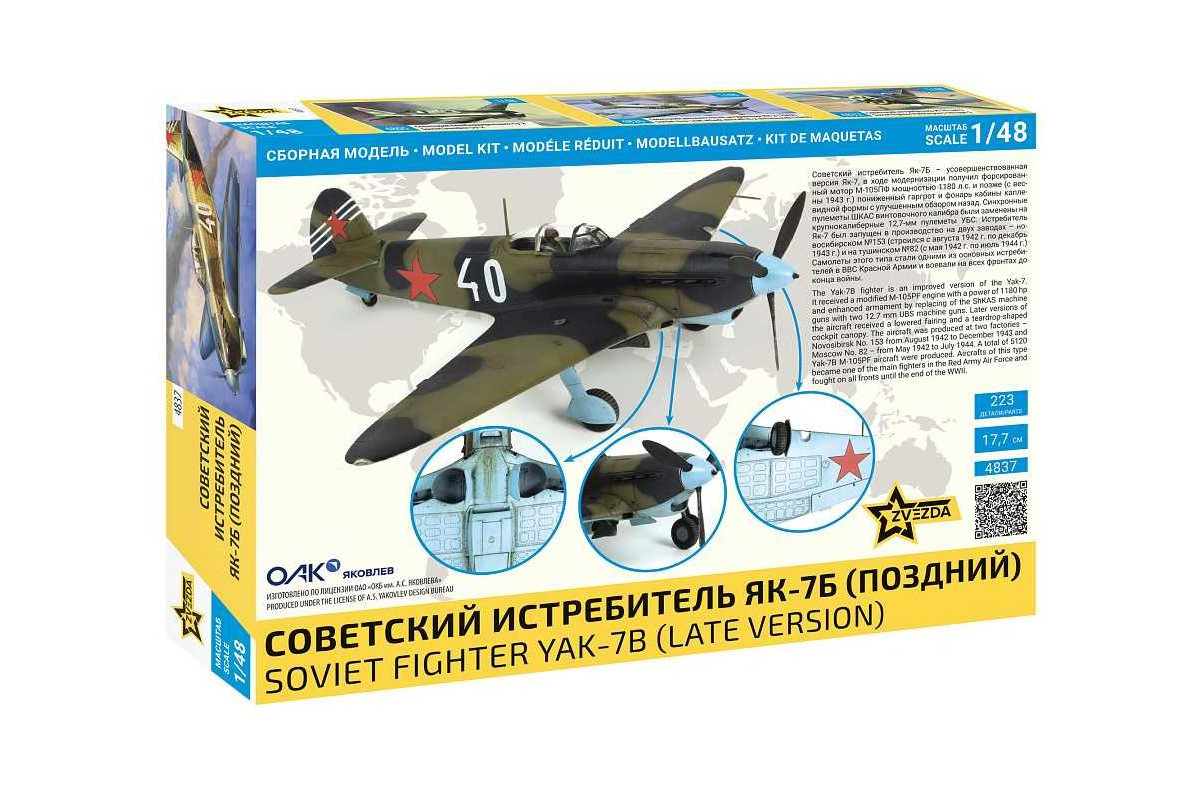 Detailní stavebnice sovětského stíhacího letounu Jakovlev Yak-7 v pozdní verzi z období druhé světové války v měřítku 1:48 od značky Zvezda.