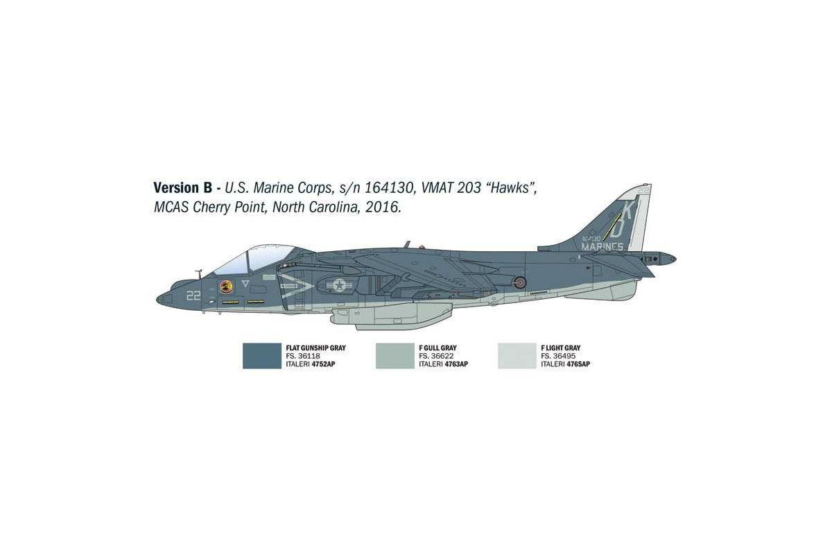 Stavebnice AV-8B Harrier II v měřítku 1:72 představuje detailní plastikový model moderního víceúčelového bojového letounu s kolmým vzletem a přistáním (VTOL). Tento model letadla je ideální pro modeláře se zájmem o moderní vojenské letectvo, letouny námořní pěchoty USA a bojovou techniku konce 20. a počátku 21. století v měřítku 1:72.
