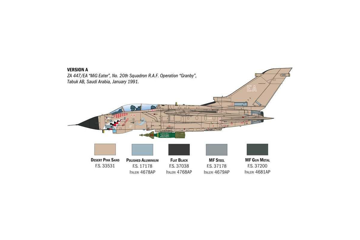 Tento model zachycuje britsko-německo-italský bitevní letoun, který byl nasazován od 80. let v mnoha konfliktech po celém světě. Stavebnice nabízí bohatě detailní kokpit, realistické podvěsy, otevřené panely motoru i možnost volitelné konfigurace výzbroje.