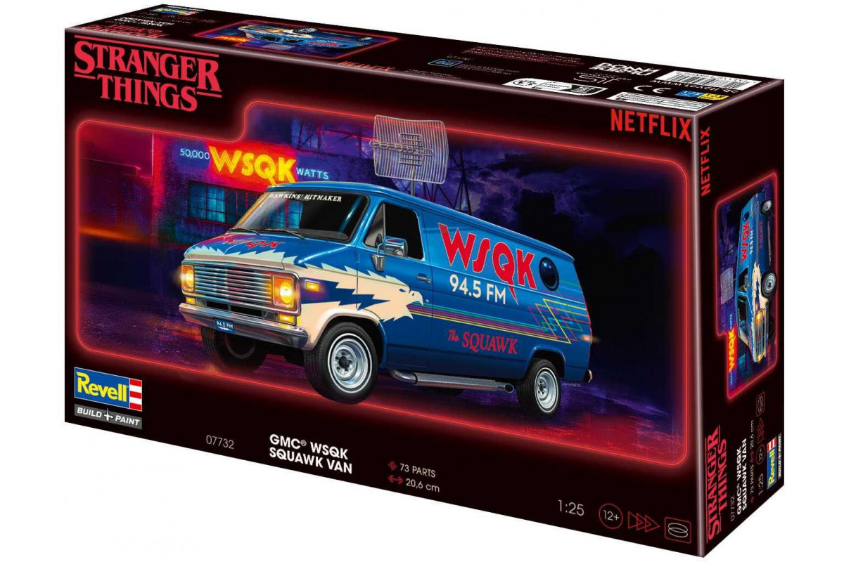 Model GMC® WSQK Squawk Van v měřítku 1:25 vychází z ikonického vozidla známého ze seriálu Stranger Things, kde slouží jako mobilní vysílací a odposlechová dodávka. Předloha je založena na skutečných amerických servisních vozech 80. let, které se běžně používaly pro televizní a rozhlasové přenosy.