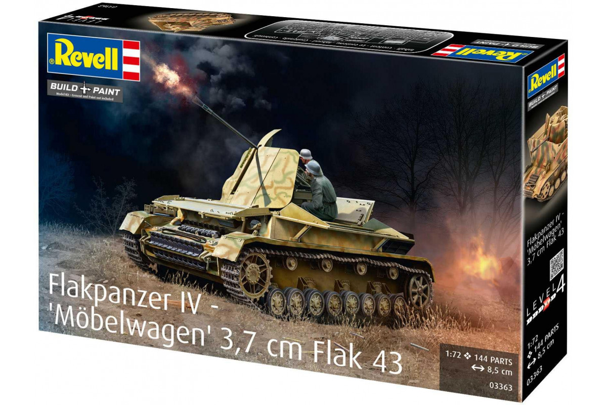 Stavebnice německého protiletadlového tanku Flakpanzer IV "Möbelwagen" s kanónem 3,7 cm Flak 43 v měřítku 1:72 od značky Revell.