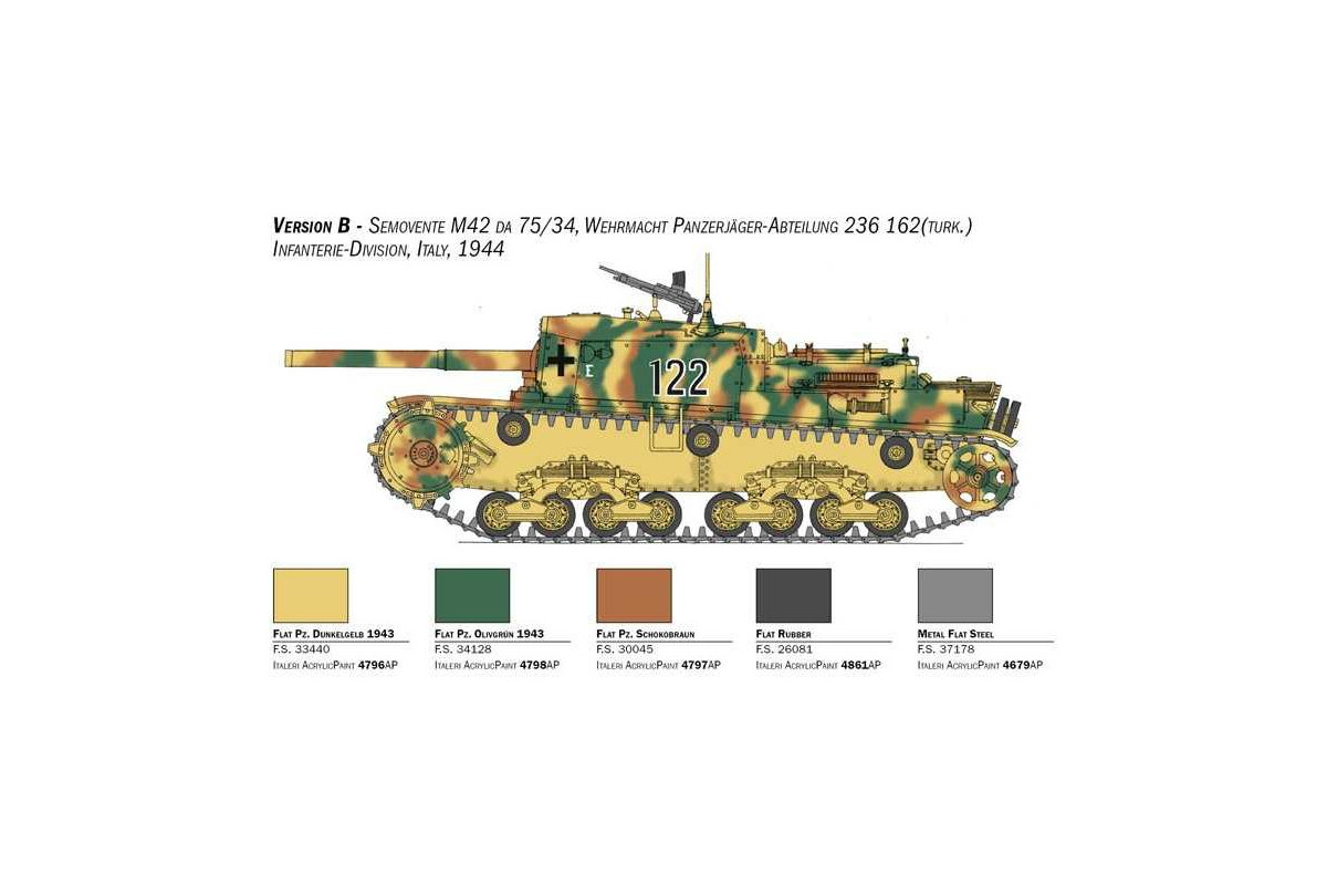 Na konci 30. let 20. století začala italská Regio Esercito (Královská italská armáda) nasazovat samohybné dělostřelecké kanóny na podporu tanků a pěších jednotek. „Semovente“ 75/18 byl vyvinut na korbě středního tanku řady „M“ a brzy se stal nejobávanějším italským obrněným vozidlem. Kromě své primární dělostřelecké role se 75mm houfnice instalovaná v kasematě ukázala jako vysoce účinná protitanková zbraň, schopná zničit i ty nejsilnější a nejtěžce obrněné britské a americké tanky. Během války však italská Regio Esercito požádala o vývoj verze se zvýšenou útočnou schopností. Kanón 75/34, který byl původně navržen pro protitankovou roli, byl namontován na korbu samohybného tanku M42. První jednotky byly na jaře 1943 distribuovány italské armádě. Díky své efektivní operační výkonnosti byly po příměří v září 1943 používány také německými protitankovými prapory.