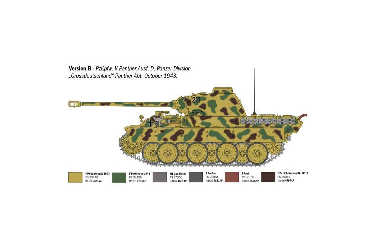 Stavebnice Pz. Kpfw. V Panther Ausf. D v měřítku 1:35 představuje detailní plastikový model německého středního tanku z období druhé světové války. Tento model tanku WWII je určen pro modeláře se zájmem o vojenskou techniku Wehrmachtu, realistické zpracování bojových vozidel a stavbu dioramat v měřítku 1:35.