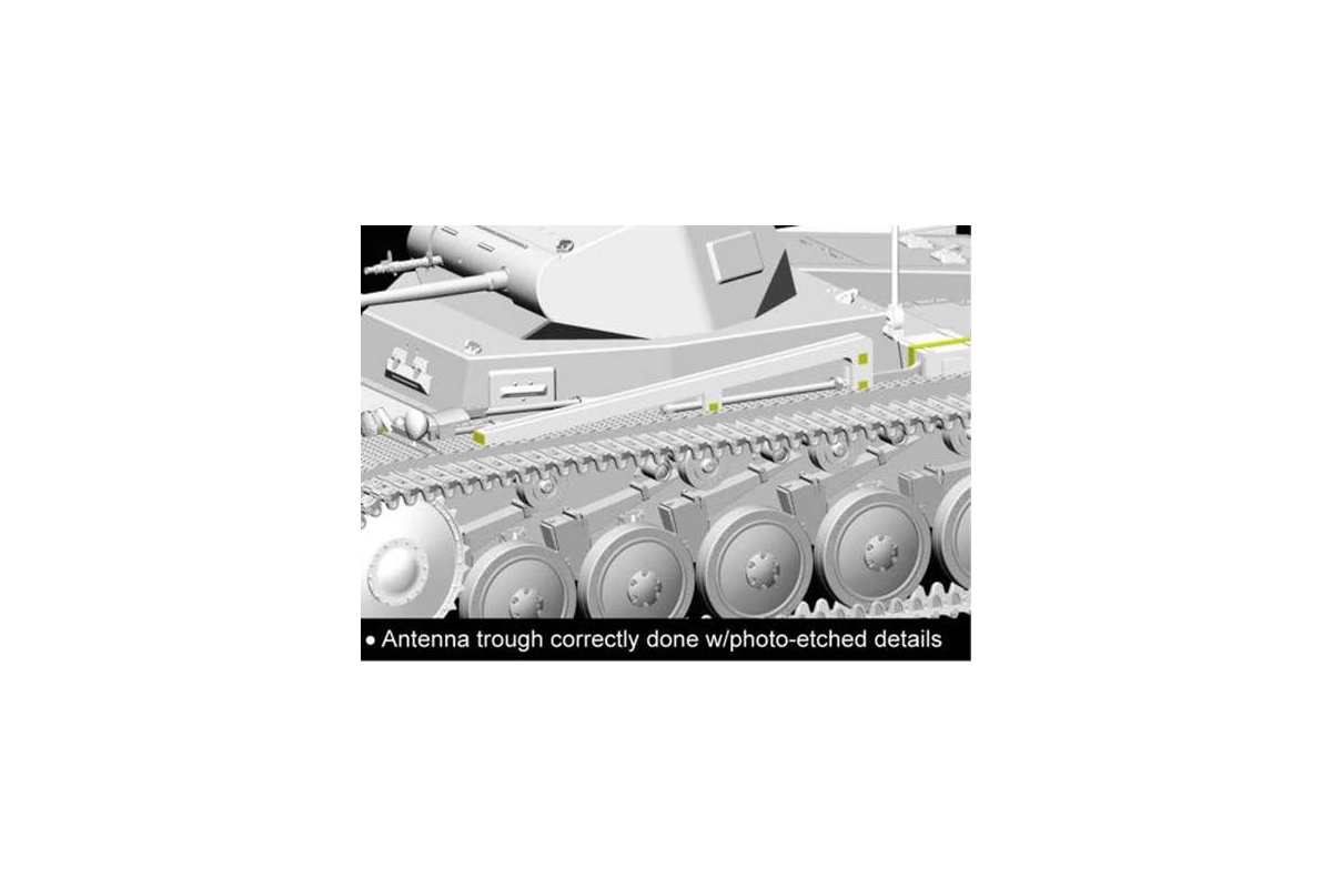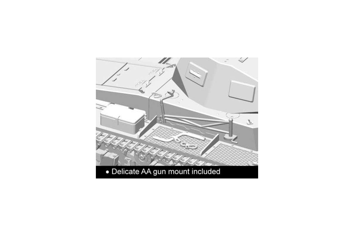 Nesložený a nenabarvený plastikový model vojenské techniky z období druhé světové války. K úspěšnému dokončení této stavebnice je zapotřebí dodatečné příslušenství a nástroje, které nejsou součástí balení. Model je třeba nejprve slepit lepidlem vhodným na plastikové modely. Po zkompletování je třeba povrch nabarvit barvami určenými na plastikové modely. Z našeho sotimetnu si můžete vybrat akrylové (vhodné pro začínající modeláře), lakérové (vhodné pro použití airbrushem) nebo enamelové barvy. Pokud chcete modelu dodat více realističnosti, doporučujeme pořízení speciální chemie, která dodá modelu vzhled provozního opotřebení a dalších zajímavých efektů.