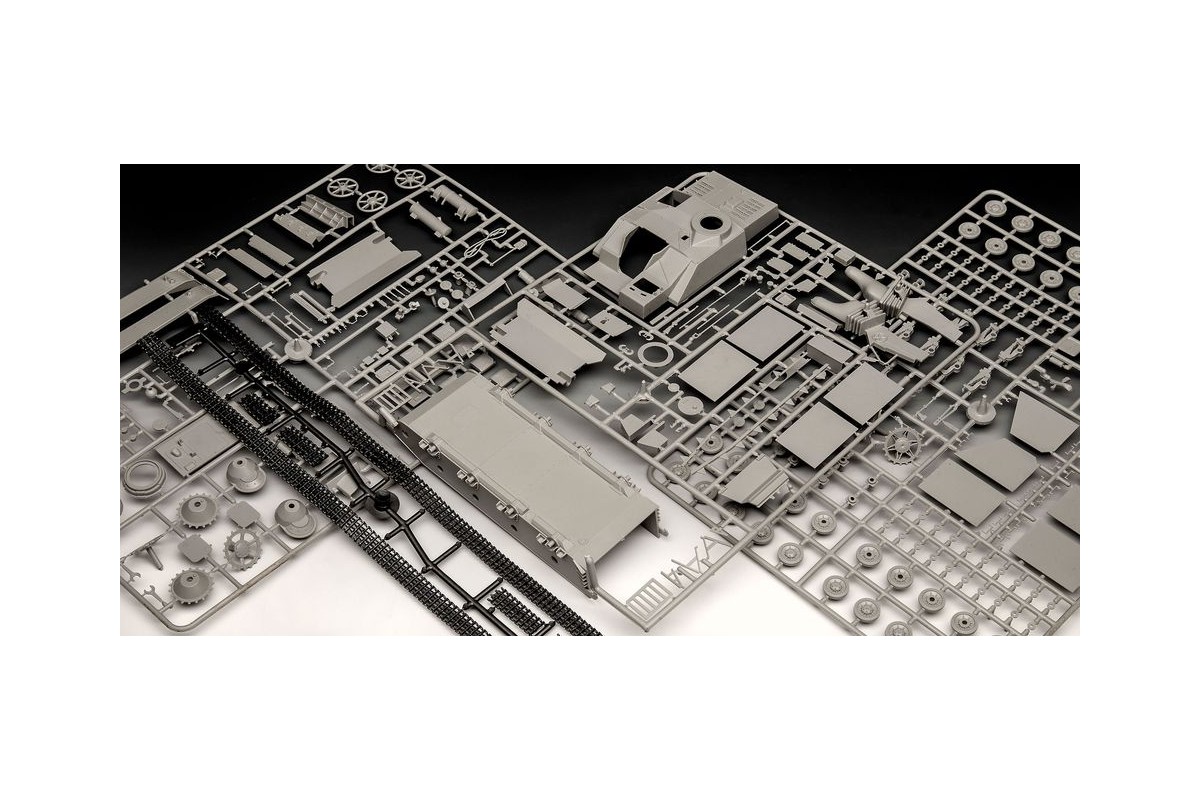 Nesložený a nenabarvený plastikový model vojenské techniky z období druhé světové války. K úspěšnému dokončení této stavebnice je zapotřebí dodatečné příslušenství a nástroje, které nejsou součástí balení. Model je třeba nejprve slepit lepidlem vhodným na plastikové modely. Po zkompletování je třeba povrch nabarvit barvami určenými na plastikové modely. Z našeho sotimetnu si můžete vybrat akrylové (vhodné pro začínající modeláře), lakérové (vhodné pro použití airbrushem) nebo enamelové barvy. Pokud chcete modelu dodat více realističnosti, doporučujeme pořízení speciální chemie, která dodá modelu vzhled provozního opotřebení a dalších zajímavých efektů.