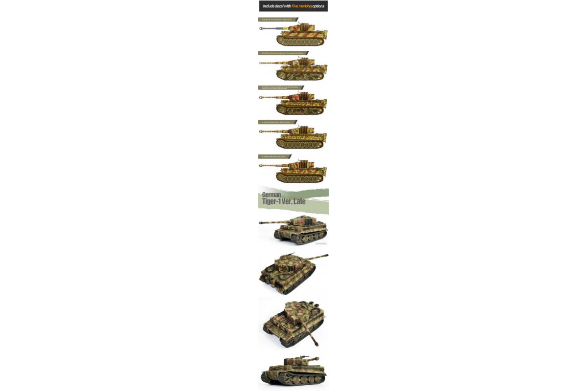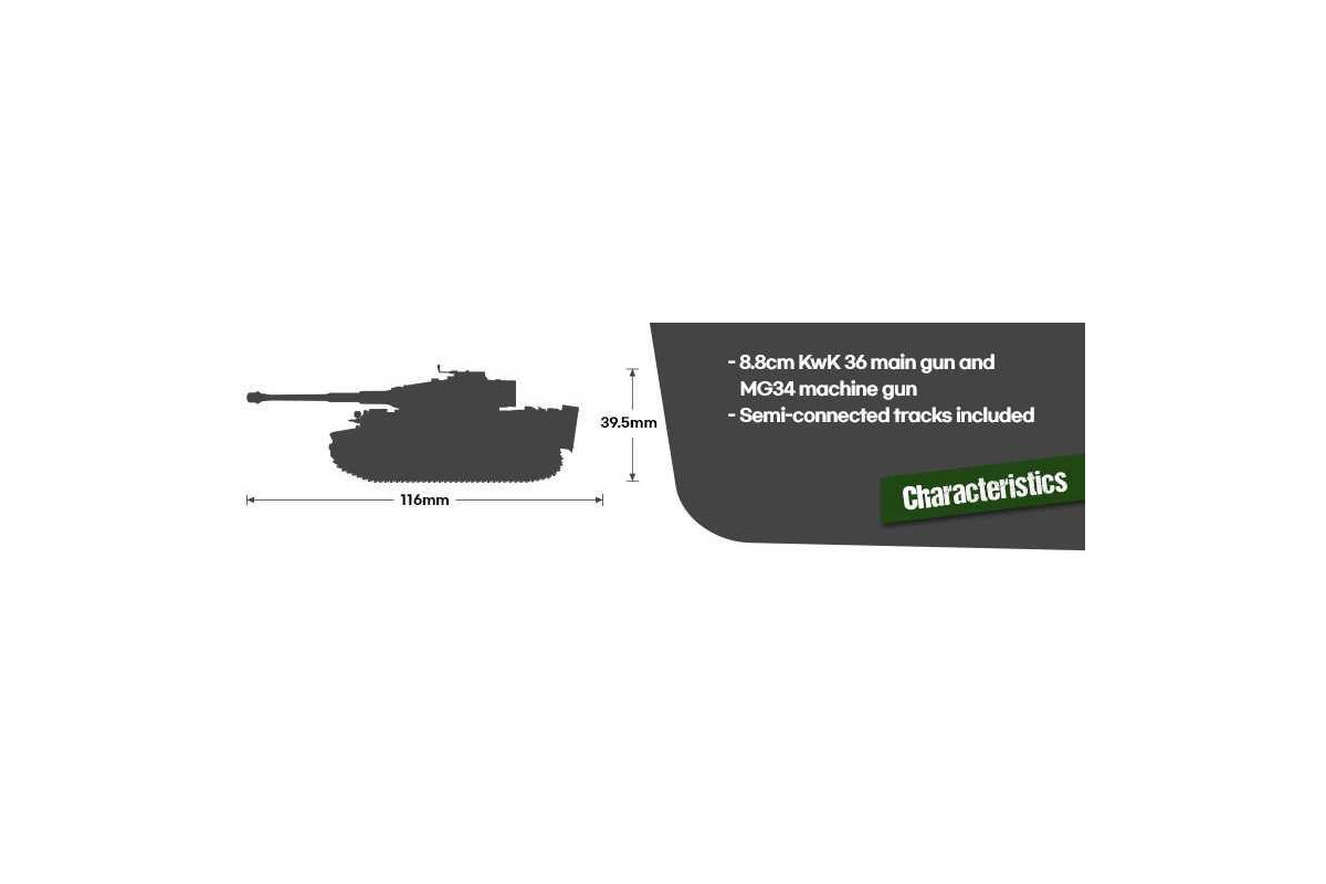 Model German Tiger I Version Late v měřítku 1:72 představuje pozdní verzi slavného německého těžkého tanku z druhé světové války. Stavebnice nabízí detailně zpracovaný trup, věž, kanon, pásy a podvozkové části.