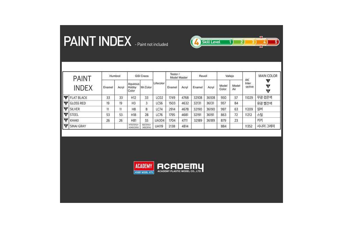 Nesložený a nenabarvený plastikový model. K úspěšnému dokončení této stavebnice je zapotřebí dodatečné příslušenství a nástroje, které nejsou součástí balení. Model je třeba nejprve slepit lepidlem vhodným na plastikové modely. Po zkompletování je třeba povrch nabarvit barvami určenými na plastikové modely. Z našeho sotimetnu si můžete vybrat akrylové (vhodné pro začínající modeláře), lakérové (vhodné pro použití airbrushem) nebo enamelové barvy. Pokud chcete modelu dodat více realističnosti, doporučujeme pořízení speciální chemie, která dodá modelu vzhled provozního opotřebení a dalších zajímavých efektů.