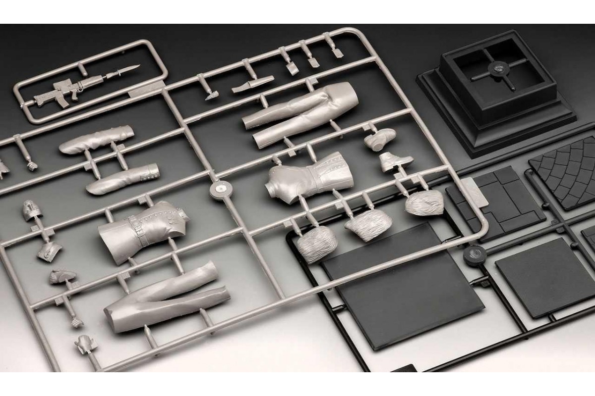 Nesložený a nenabarvený plastikový model vojenských figurek. K úspěšnému dokončení této stavebnice je zapotřebí dodatečné příslušenství a nástroje, které nejsou součástí balení. Model je třeba nejprve slepit lepidlem vhodným na plastikové modely. Po zkompletování je třeba povrch nabarvit barvami určenými na plastikové modely. Z našeho sotimetnu si můžete vybrat akrylové (vhodné pro začínající modeláře), lakérové (vhodné pro použití airbrushem) nebo enamelové barvy. Pokud chcete modelu dodat více realističnosti, doporučujeme pořízení speciální chemie, která dodá modelu vzhled provozního opotřebení a dalších zajímavých efektů.