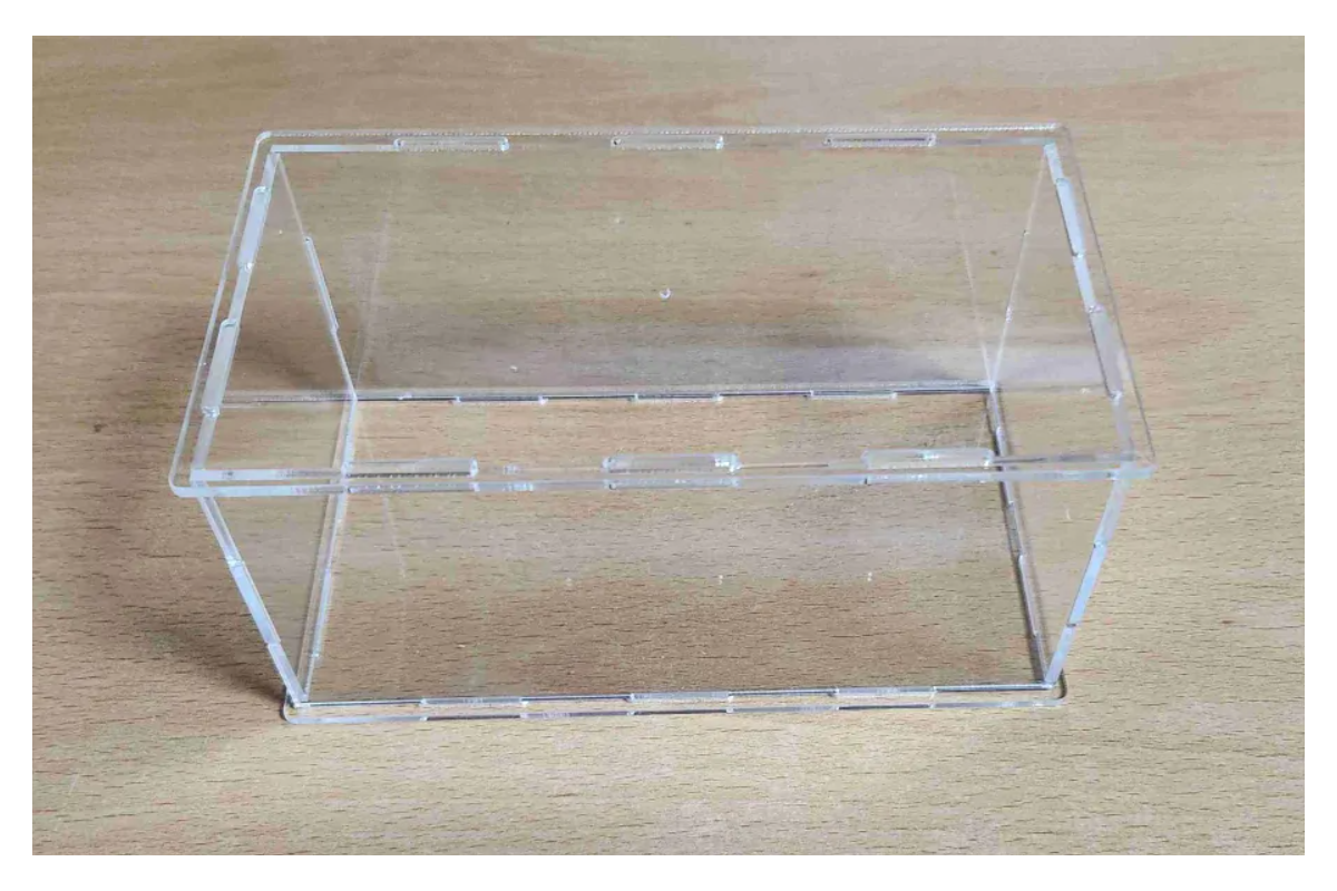 Box je vyroben z plexiskla o síle 2 mm a dodáván v rozloženém stavu. Jednotlivé díly do sebe přesně zapadají, takže při běžném použití není nutné používat lepidlo. Dno boxu může být vyrobeno z průhledného, černého nebo zrcadlového plexiskla podle zvolené varianty.