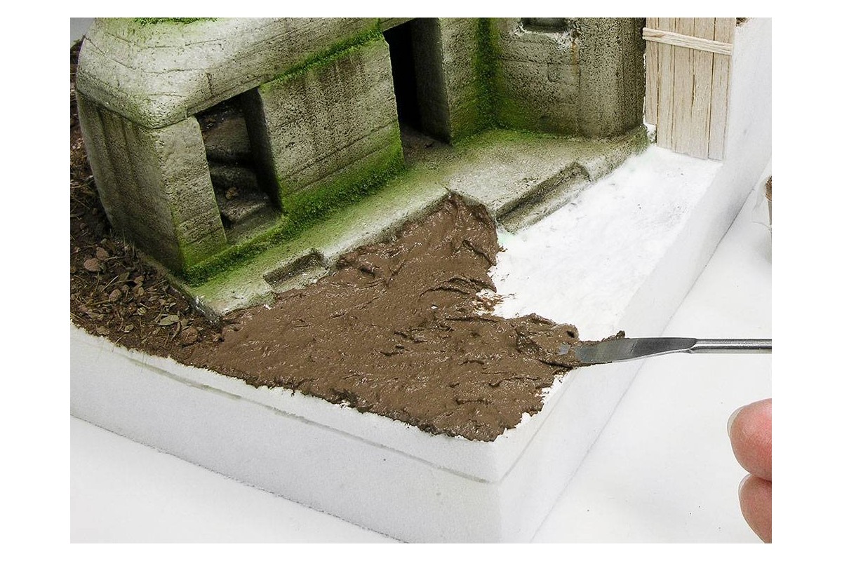 Tmavá země je ideální pro vytvoření rozmanitých odstínů země na diorama nebo všude tam, kde je požadovaná silná a hustý textura. Nanášejte v tenkých nebo silných vrstvách, dle potřeby. Doba schnutí je přibližně 24 hodin.