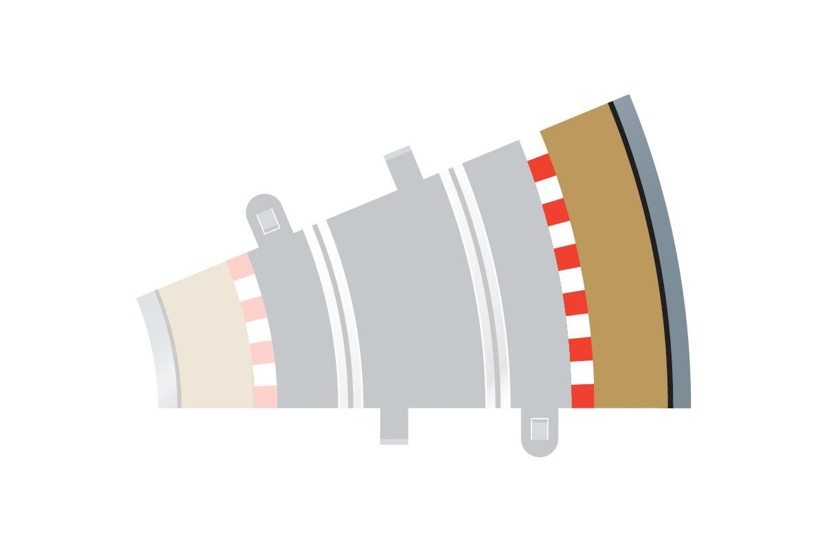 Vnější okraj zatáčky 22,5° pro autodráhu Scalextric - rozšíření trati. Velikost: 4x 22,5°.