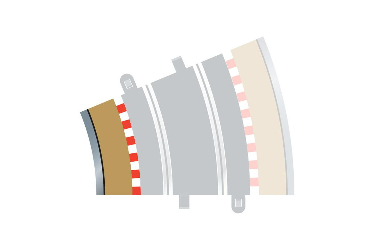 Vnitřní okraj zatáčky pro autodráhu Scalextric - rozšíření trati. Velikost: R3, 4x 22,5°.