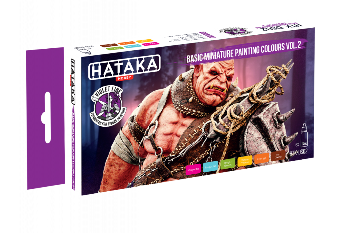 Akrylové barvy Hataka z fialové řady (Violet Line) jsou navrženy speciálně pro malování figurek štětcem. Tato sada nabízí vyváženou kombinaci výrazných a doplňkových odstínů na bázi 100% akrylové emulze s velmi vysokým obsahem pigmentu – až 50 %.